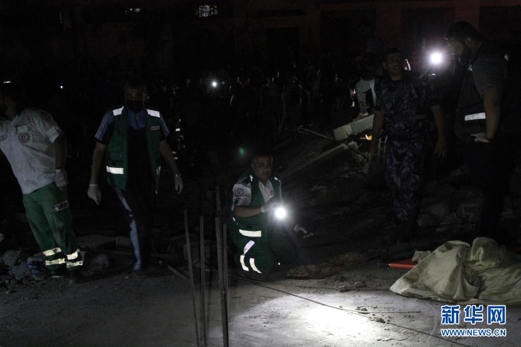 5月15日,救援人員在加沙城的空襲廢墟中搜救。