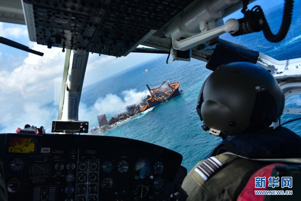 6月2日,斯里蘭卡總統戈塔巴雅下令將起火貨船“X-PRESS PEARL”號拖向遠離科倫坡港的深海區,以防引發更大的環境災難?!癤-PRESS PEARL”號貨船5月20日抵達科倫坡港西北約9.5海里錨地時發出火警求救信號。斯里蘭卡海洋環境保護局官員5月28日表示,在科倫坡港附近起火燃燒的“X-PRESS PEARL”號貨船預計將會引發嚴重環境災難。新華社發(斯里蘭卡空軍媒體處供圖)