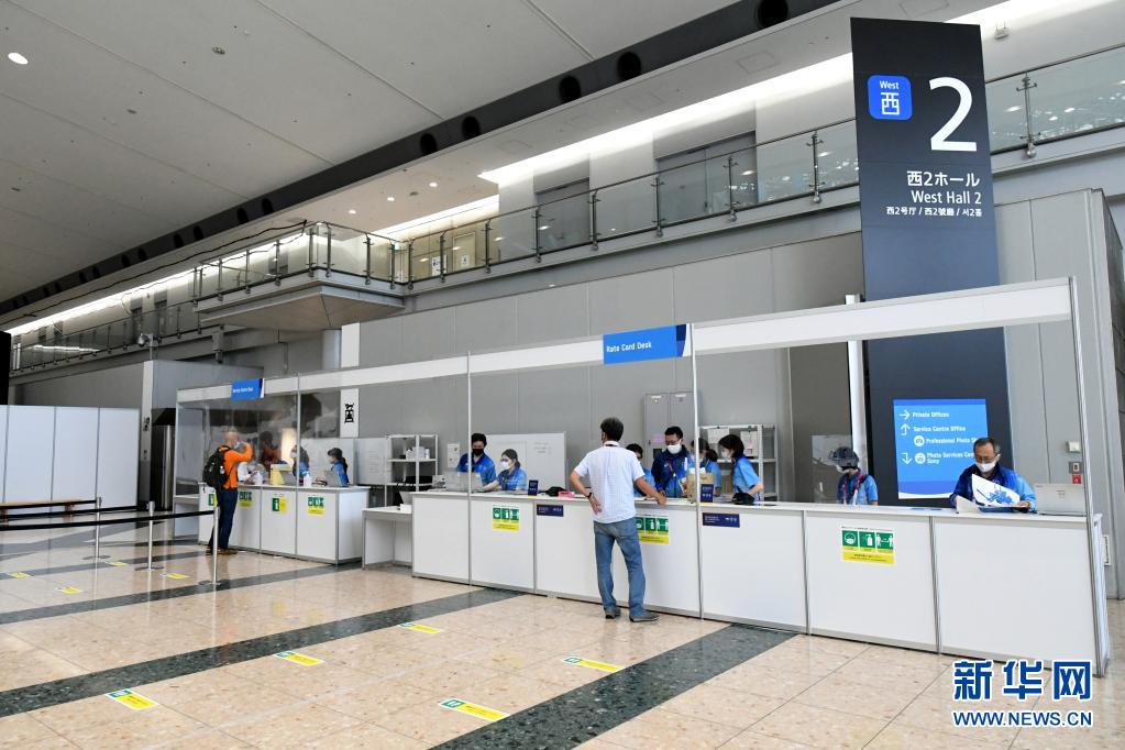 7月1日,工作人員在奧運會主新聞中心服務臺接待媒體人員。新華社記者 華義 攝