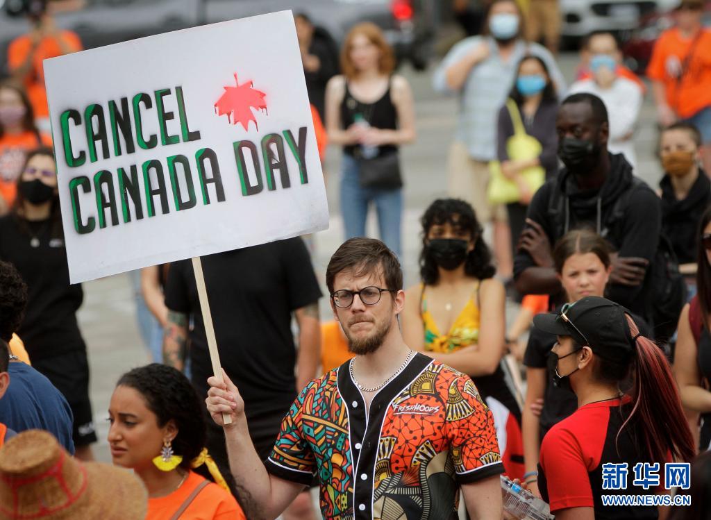 當(dāng)天是加拿大日,上千名抗議者在溫哥華集會(huì),悼念加拿大在強(qiáng)制“同化”原住民過程中遭到殘害的兒童,呼吁取消加拿大日的慶祝活動(dòng)。